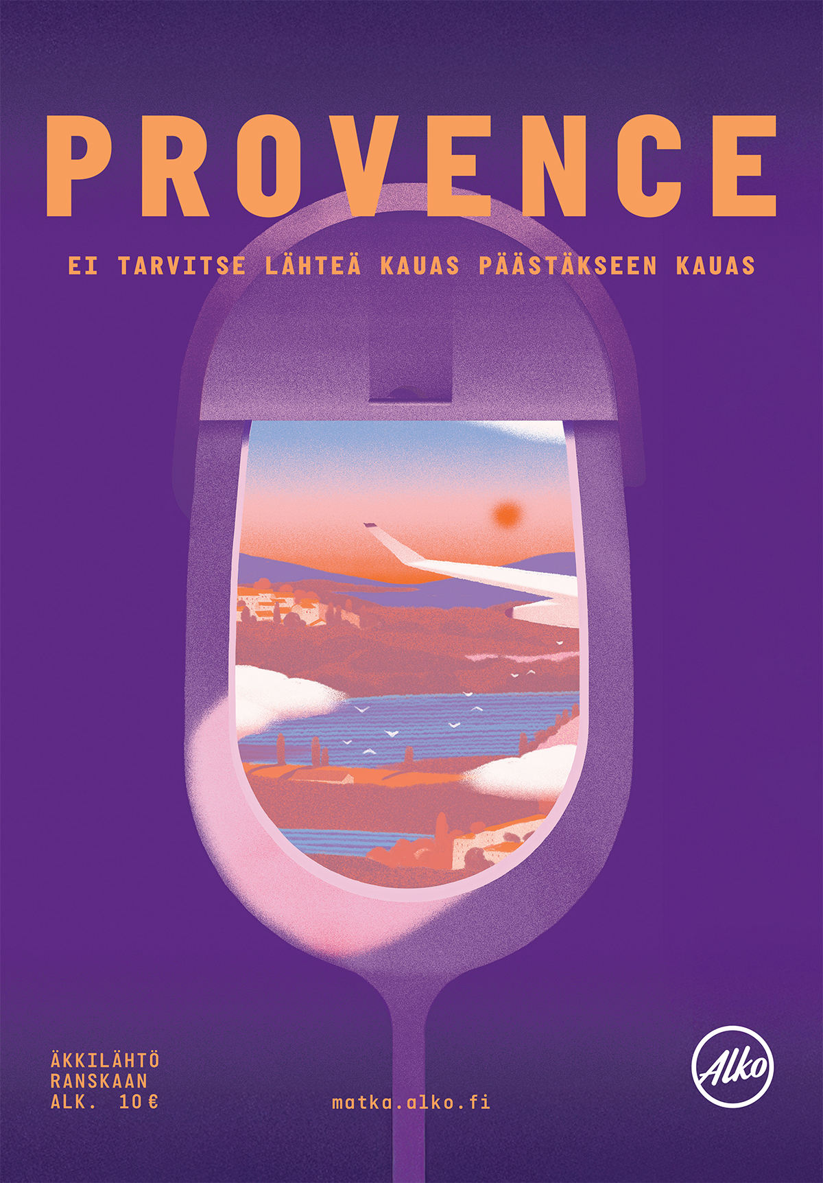 Perustelut: Pimeän vuodenajan ja kaukokaipuun keskellä mainossarja muistuttaa, että aina ei tarvitse matkustaa toiseen maahan päästäkseen suosituille viinialueille. Reissuja maailman ympäri voi tehdä lähimmän Alkon hyllyjen välissä. Nerokas idea ja taitava toteutus!
