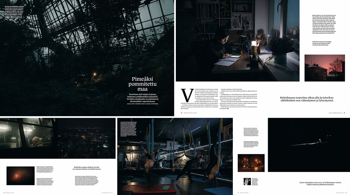 Kuvaajalle erityisen palkitsevaa on saada lehteen kuvalähtöinen juttu. Suomen Kuvalehdessä julkaistu Pimeäksi pommitettu maa -juttu rakentui Yrjösen ottamien kuvien ympärille. Se kertoo siitä, kuinka Venäjän iskut Ukrainan energiainfraan näkyvät siviilien elämässä.