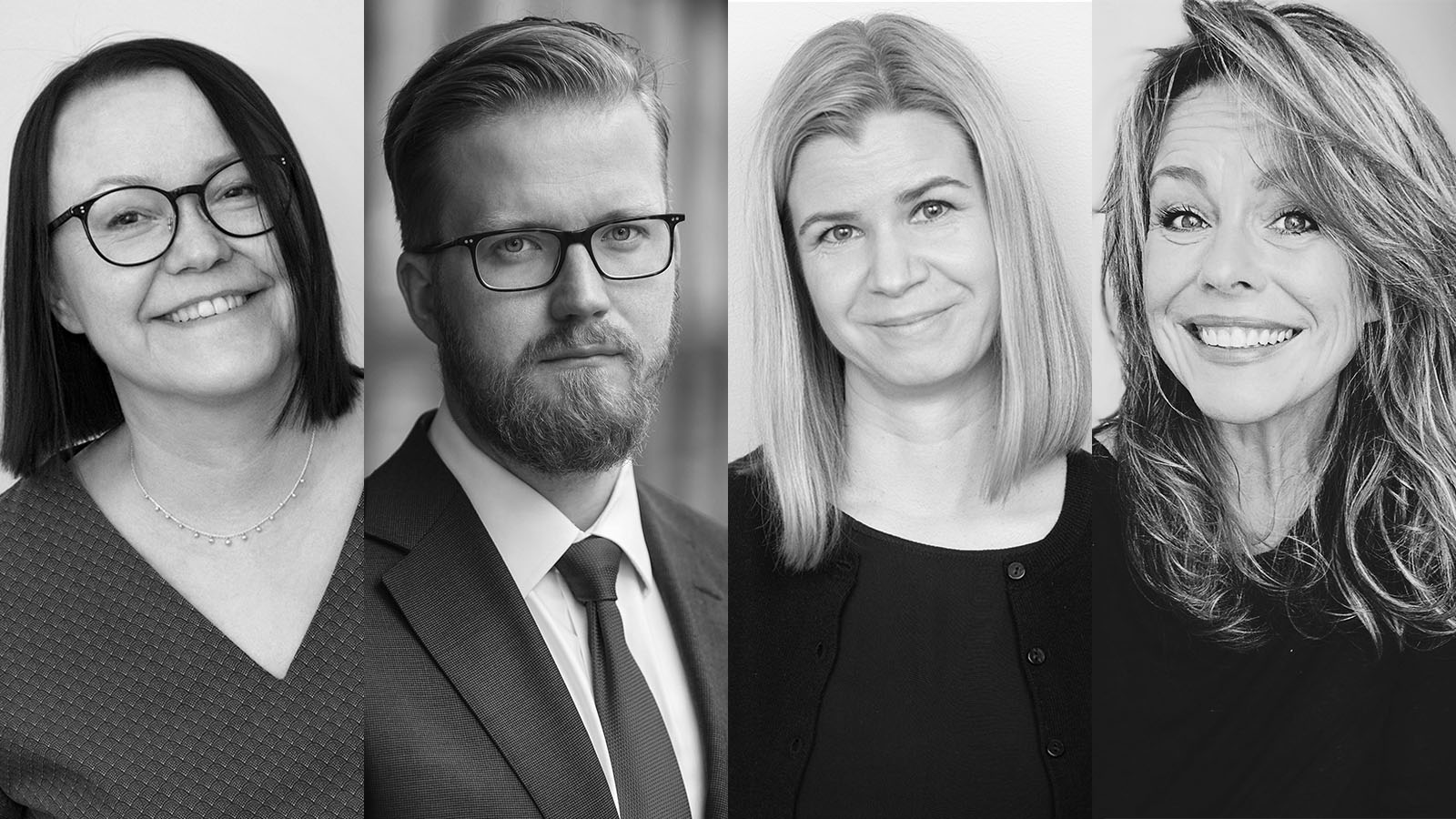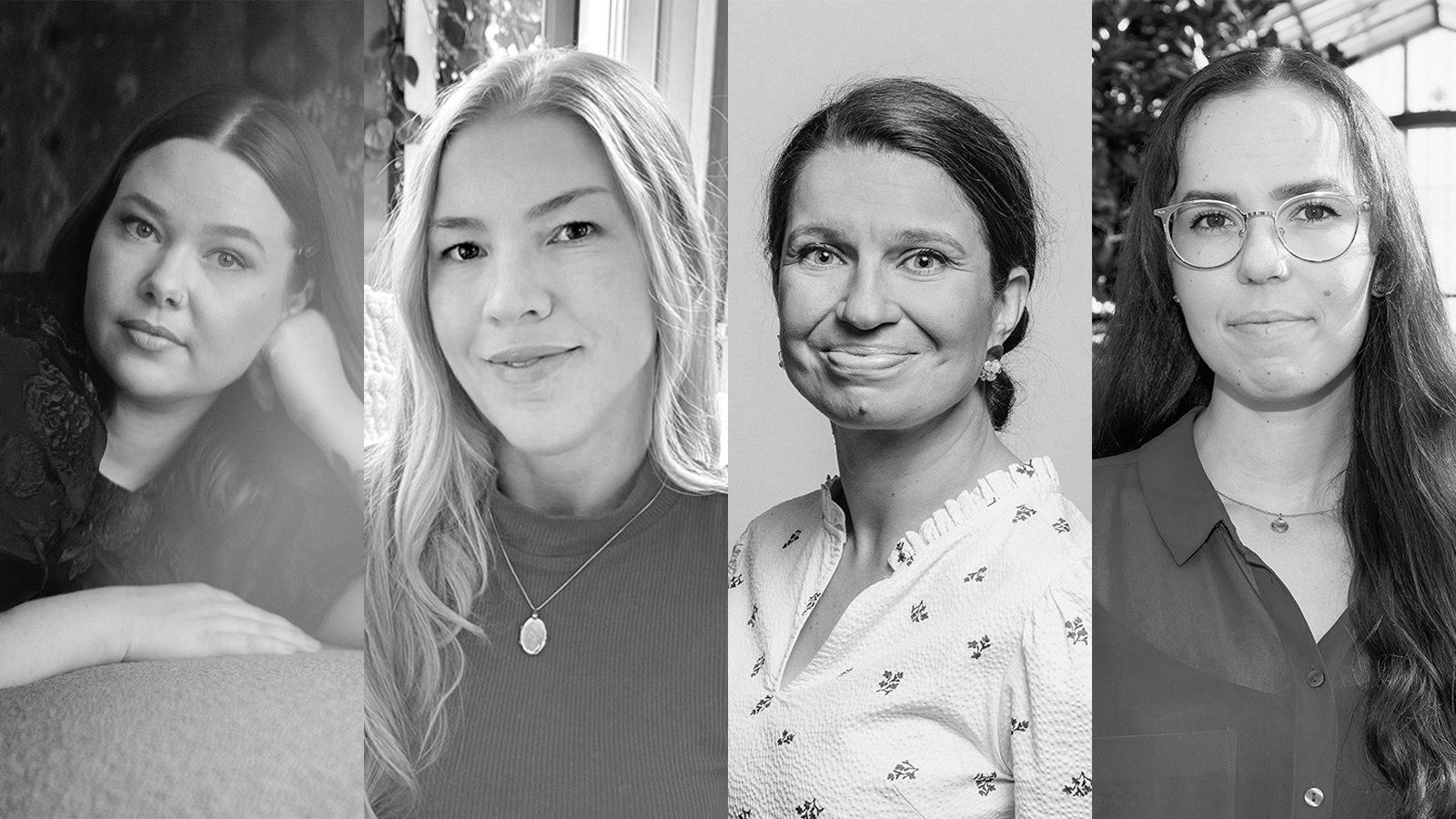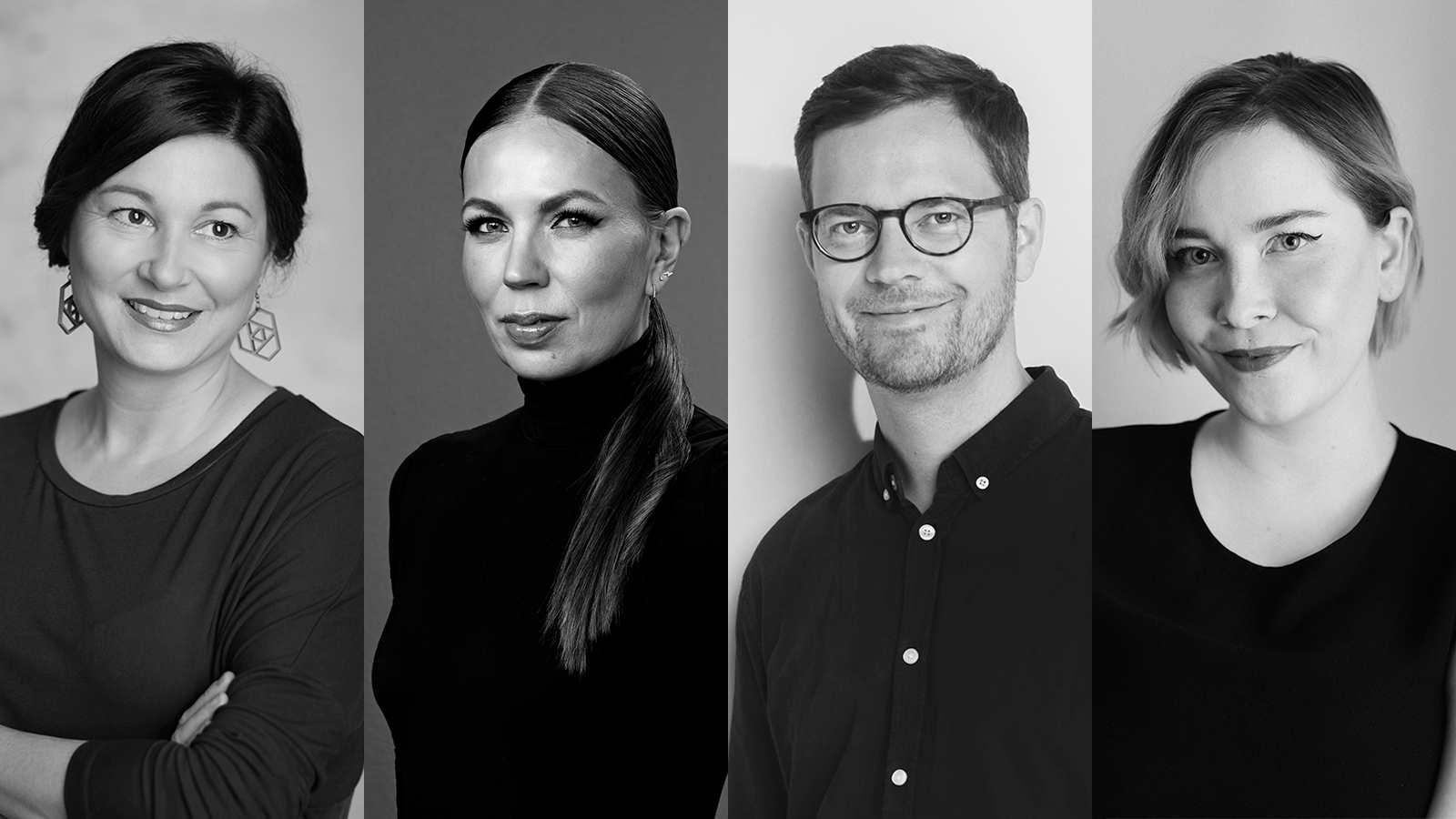 Vuoden digikonseptin valitsevat Christina Boman, Riikka Huttunen, Riina Malhotra ja Roosa Welling. Kuvat: Eeva Murtolahti, Riikka Huttunen, Laura Mainiemi / Yle ja Joona Möttö.