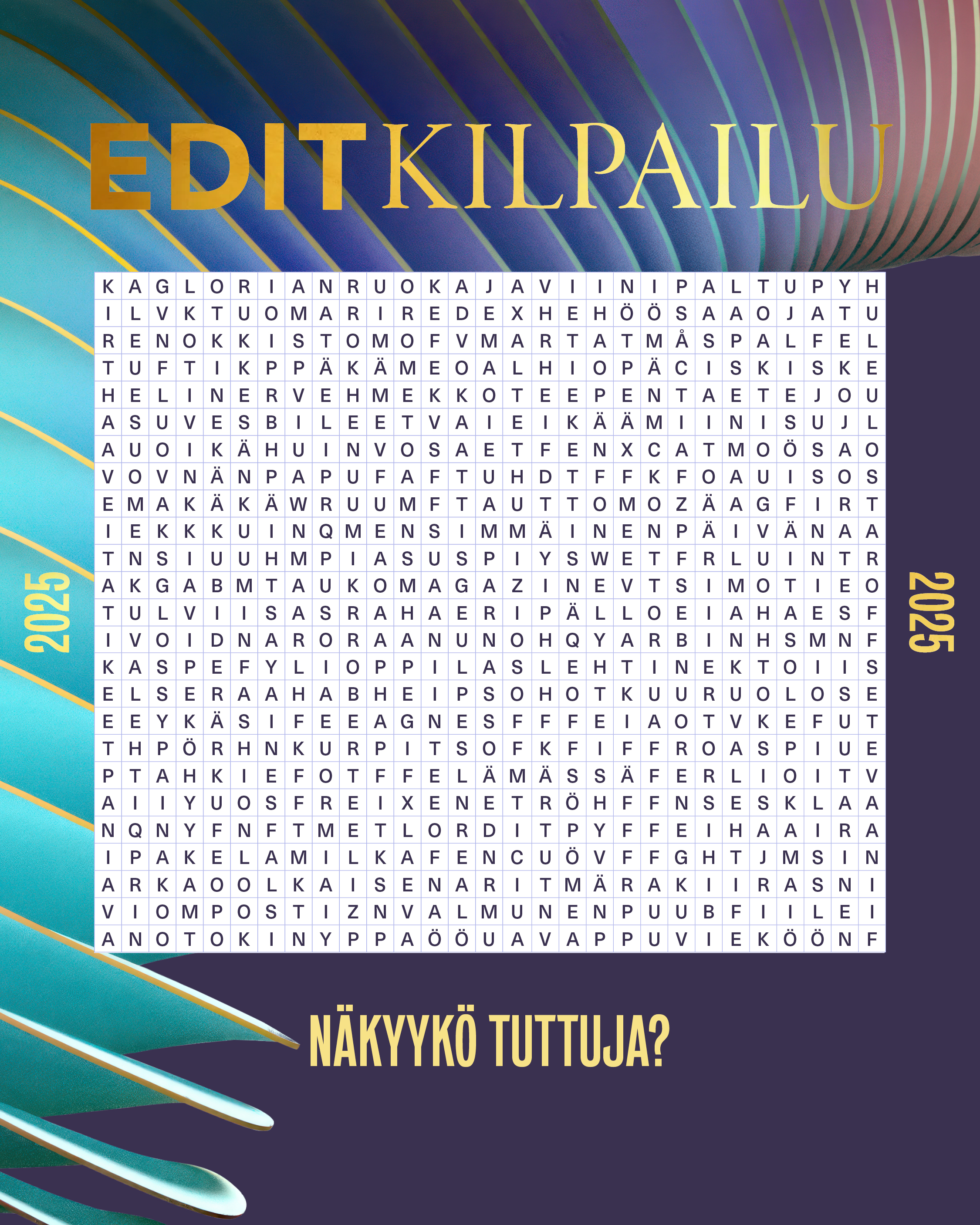 Shortlistat julkaistaan pääsiäisen jälkeen, jolloin myös ennakkohintaiset gaalaliput tulevat myyntiin! Tämän vuoden Editgaala juhlitaan Wanhassa Satamassa 7. toukokuuta.
