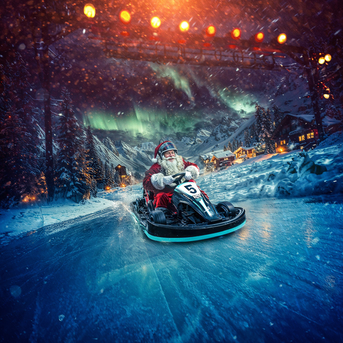 Kun lähdetään rakentamaan laadukasta mainoskuvaa, promptaaminen on yksi pieni pisara meressä. Esimerkiksi mainoskuvaan, jossa joulupukki ajaa karting-autolla Levin talvisessa maisemassa, hän promptasi yhteensä 885 kuvaa ja käytti 60 tuntia Photoshopissa sen rakentamiseen.