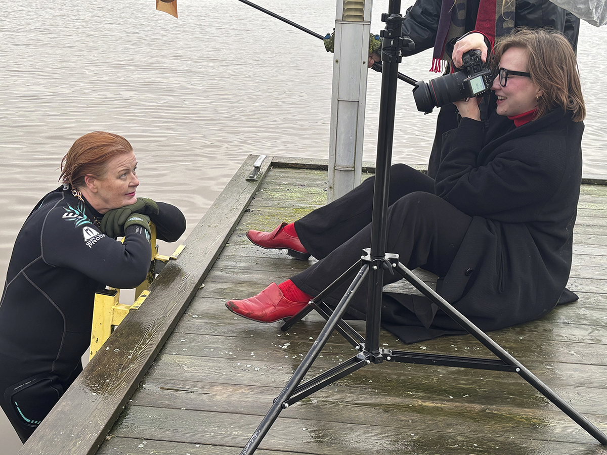 Mari Paalosalo-Jussinmäki ja valokuvaaja Jirina Alanko työn touhussa. Kuva: Teija Laakso